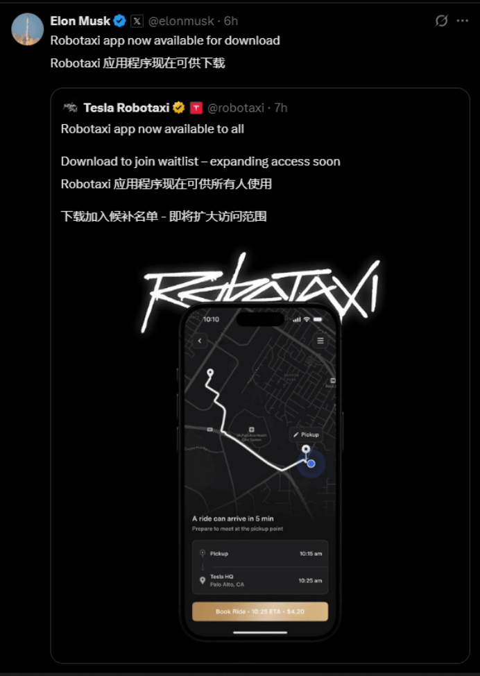 ▍特斯拉Robotaxi应用已正式对美国公众开放;FSD在欧洲柏林工厂实现自动从生产线行驶至指定停放区域