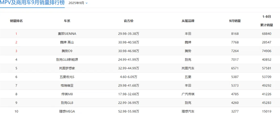 9月MPV市场格局迎来剧烈震荡,TOP 10排名颠覆过往认知,曾经的标杆车型纷纷移位,黑马车型强势突围,让网友直呼“没想到”。