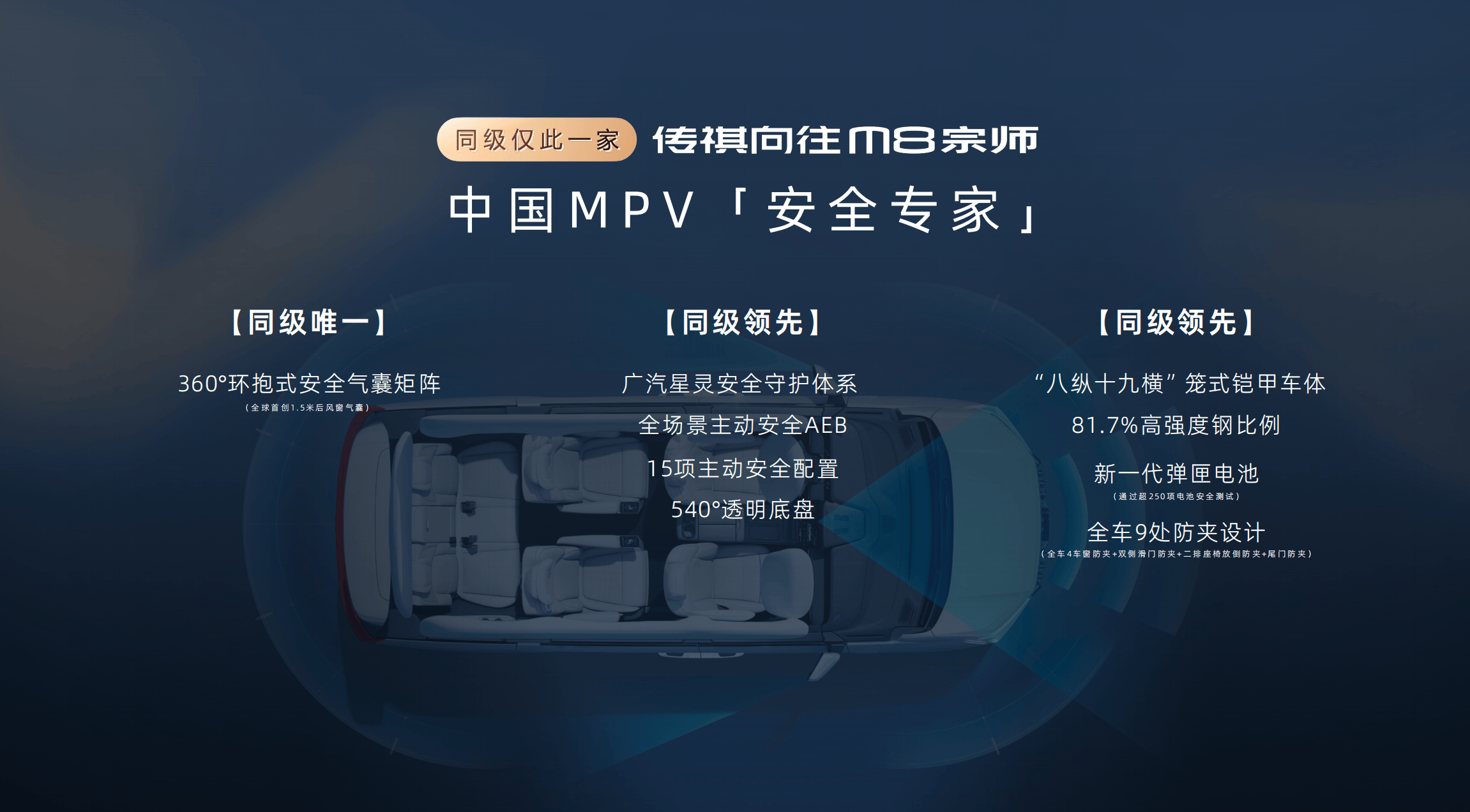 此次向往M8宗师的上市,更邀请前中国男篮队长、联赛八冠王周鹏夫妇担任首位车主,“冠军遇上冠军”的组合,恰是传祺MPV实力的生动注脚。从“五星健康车”到“年度最佳MPV”,传祺M8系列早已是行业内获得荣誉最多的中国MPV,其首创的后风窗气囊、无风感空调等技术,更一次次打破合资车型的技术壁垒。当市场仍在纠结“家用MPV能否兼顾豪华与实用”时,传祺已用向往M8宗师给出答案:以“中国智能MPV专家”的定位,覆盖家庭通勤、长途出游、商务接待等全场景,让“向往的生活”不再局限于想象,而是每一次出行的真实体验。