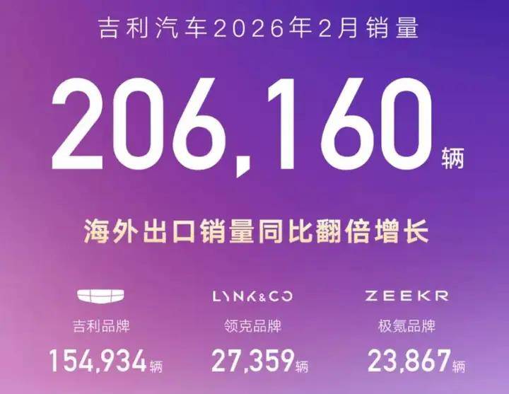 2026年2月,中国车市遭遇传统淡季与多重压力的双重夹击,春节长假导致有效销售工作日大幅缩减,车市“开门黑”的论调在行业内蔓延。在此背景下,吉利汽车交出了一份稳中有进的月度成绩单。