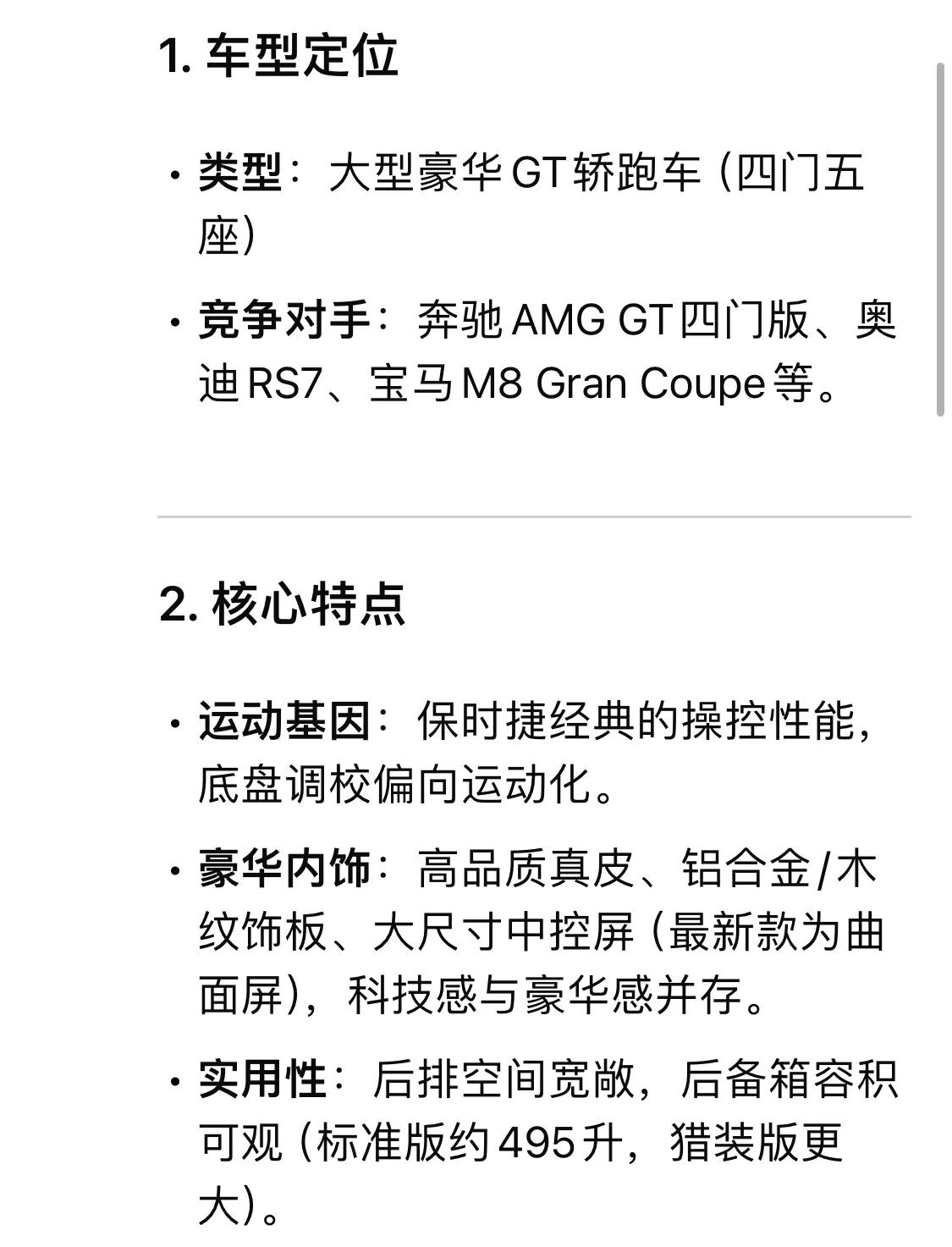 保时捷帕拉梅拉(Porsche Panamera)是保时捷品牌旗下的一款豪华四门轿跑车,兼具高性能与日常实用性。