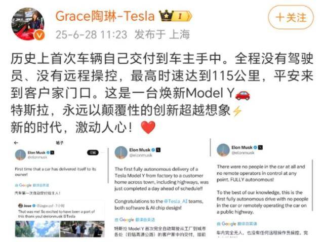 值得关注的是,此次交付的Model Y车内完全无人,全程无远程操作员干预,真正实现了在公共高速公路上的无人驾驶。马斯克特意赞扬了公司的软件和AI芯片团队,正是他们的努力让这一技术突破成为现实。