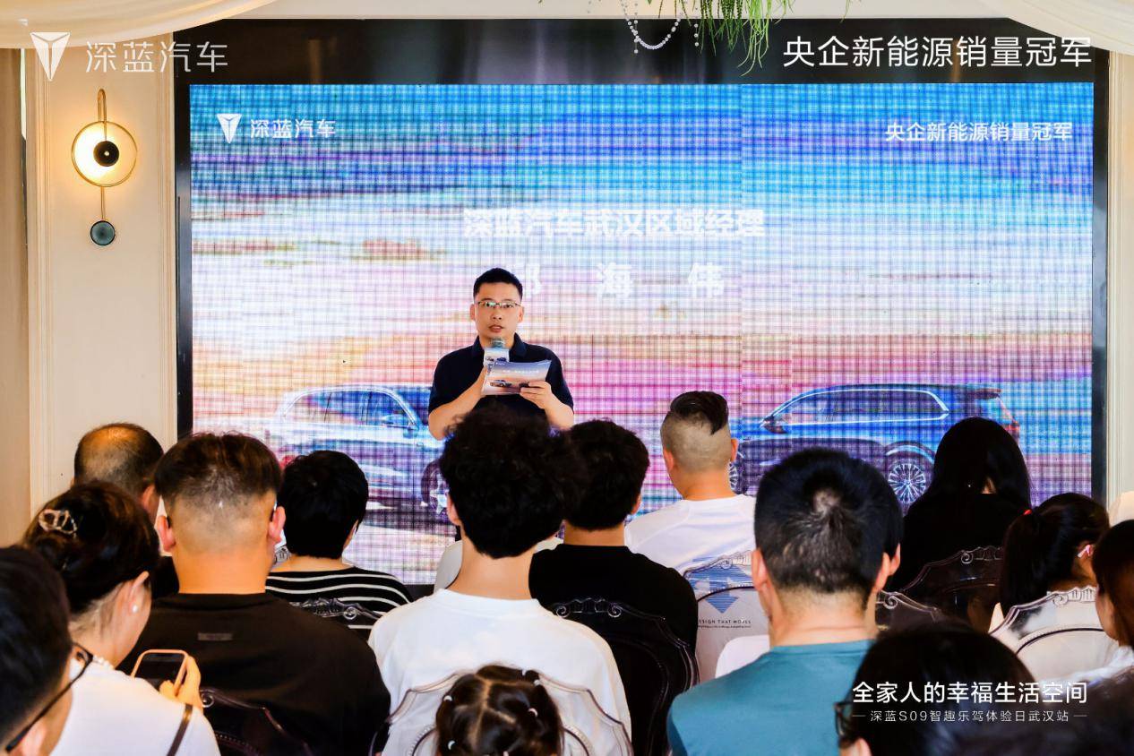 主持人介绍了莅临的领导及嘉宾之后,紧随邀请上深蓝汽车武汉区域经理邱海伟登台致辞,让我们了解到,深蓝S09以”家庭智慧旗舰”为核心理念,融合尖端智能科技与豪华驾乘体验,重新定义30万级纯电SUV的价值标准。凭借超长续航、高阶智能驾驶与全场景交互生态,S09致力于为用户带来超越预期的智趣出行体验,让未来科技触手可及。