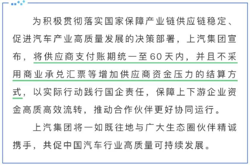 回到最开始的问题,各大车企给出60天账期承诺后,供应商的处境就会立即好转吗?这里恐怕很难给出结论,首先大部分车企都目前仍采用“承兑汇票”的方式结算,承兑汇票相当于一张支票,如果是银行承兑汇票,供应商拿这张票据在约定时间去银行拿钱就行,至于车企自己开的商业承兑汇票,则是在约定时间找车企拿钱。需要注意的是,这里面的约定时间一般是3个月以上,也就是说,60天账期+3个月以上的商业承兑汇票才是实际的付款周期。