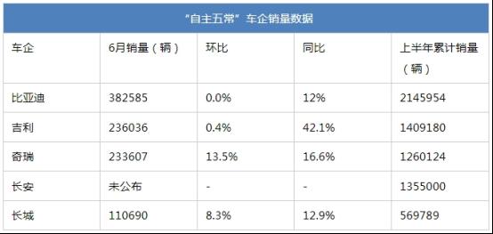 1. 自主五大车企销量
