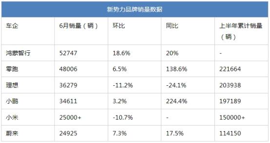 讲完了自主五大车企,咱们再来看新势力品牌这块,鸿蒙智行以52747辆的月销登顶,而零跑、小鹏、蔚来稳步增长,与上月相比总体变化不大,不过理想、小米在销量上出现了比较明显的下滑。