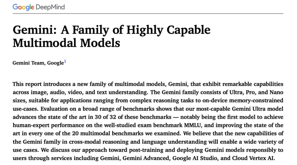 这篇论文不仅展示了谷歌当时最新AI模型的性能突破,还为业界树立了多模态模型的新标杆。Gemini不再只是一个“对话模型”,它已经是一个能听、看、读、写、思考的通用 AI 智能体雏形,在多个任务中表现优异,部分能力已超越人类专家水平,意味着通用人工智能(AGI)又迈出了一大步。