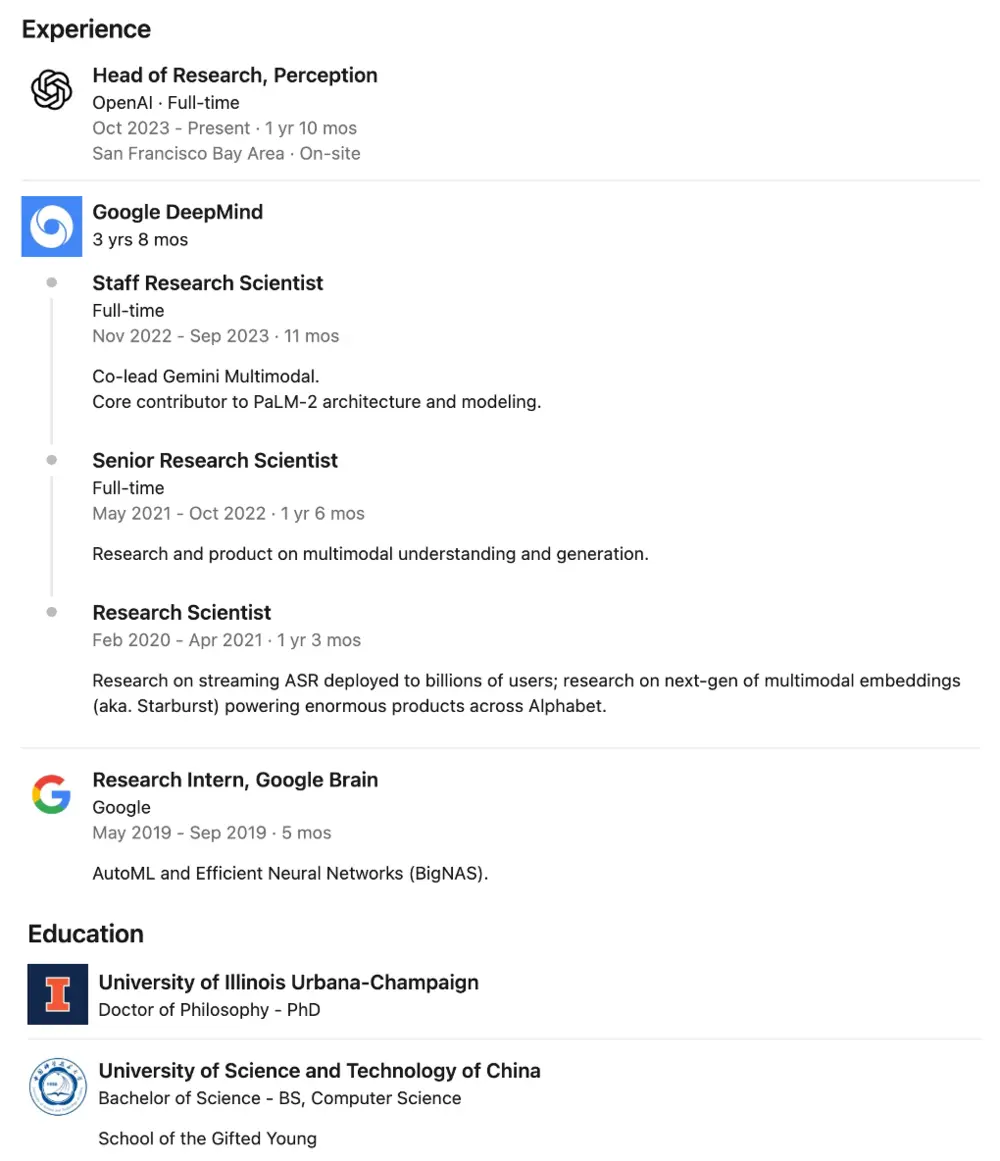 在Google Brain期间,他不仅参与了谷歌旗舰模型Gemini的多模态团队工作,更在一定程度上承担了领导职责。Gemini作为谷歌推出的多模态大语言模型,集语言理解、图像识别与生成等多项能力于一身,发布后在AI学界掀起热烈讨论。