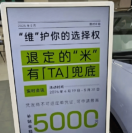 《汽车商业评论》询问河南一家鸿蒙智行店,销售人员表示:“这个现金补贴确实存在,属于当地的新购车补贴,现在到店下订还能享受,但下周就不一定了。”