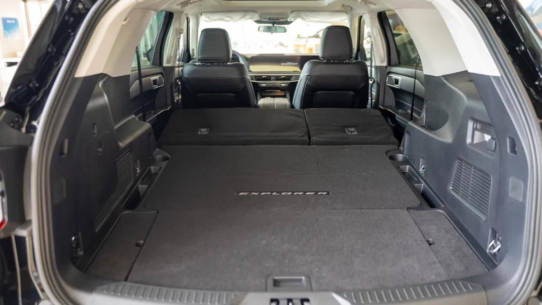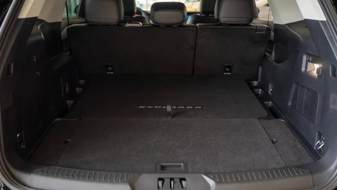 而当将第二排放倒后,就可以进入全新探险者四驱穿越版最强的自驾游模式。算上盖板下方的空间后,可以拥有1605L的容积。并且这还是窗线下方容积,符合国际化车企相对严谨的宣传方式。按照国内品牌的宣传手法,探险者扩展后的后备厢容积会超过2000L。