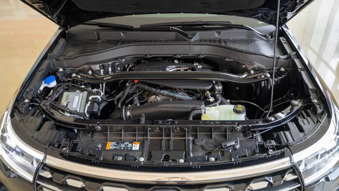 机舱内还是我们的老朋友,一台拥有289马力,445牛·米的2.3T四缸发动机,与之匹配的依旧是10AT变速箱。动力通过两根传动轴以及中央的多片式离合器分配给前后桥。并且与一般这个价位SUV不同的是,探险者使用了纵置平台,不仅后轮是主驱动轮,同时也拥有50:50的前后配重,以及5.9米的转弯半径,公路行驶能力会非常出色。