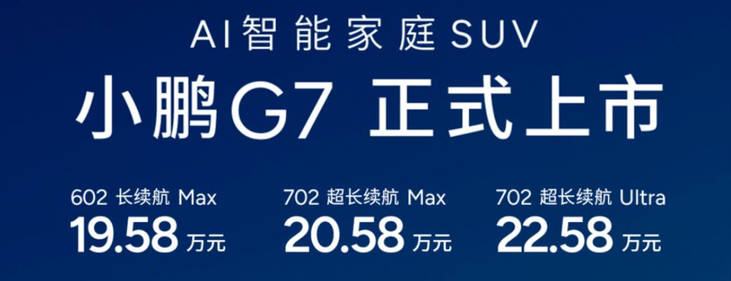 小鹏G7新车起售价19.58万,按照小鹏的产品规划,其实小鹏G7定的是小鹏G6的价格,当年的小鹏G6就是20万左右起售的价格。