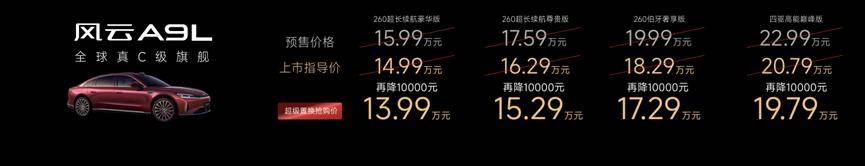 风云 A9L 以 “顶配下放” 策略,将 50 万级配置以 13.99 万元起的价格普惠用户。