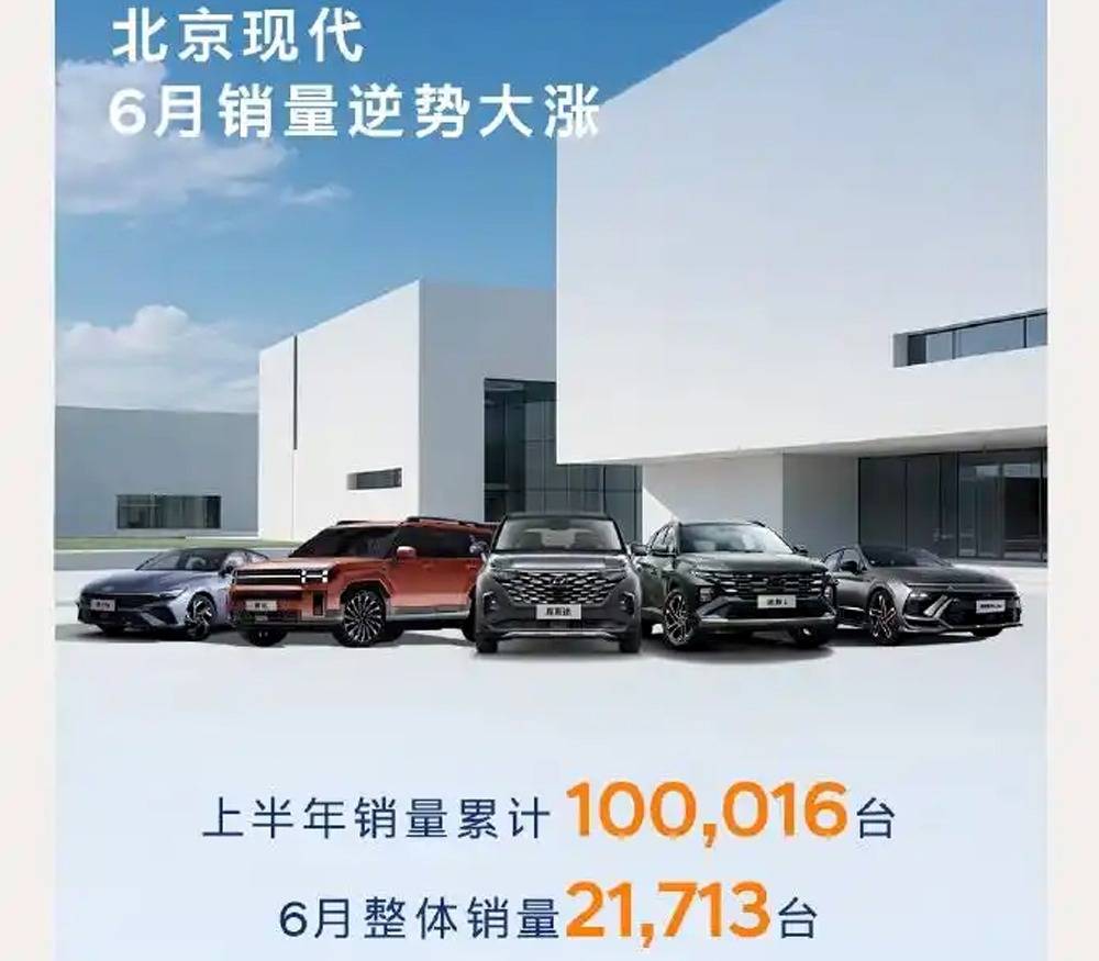 根据北京现代公开的销售数据显示,2025年1-6月北京现代累计销量勉强超过10万台,只有100016台,6月销量21713台,其中,伊兰特月销10394台,途胜L月销3112台,库斯途月销2632台。说实话,刚刚过去的6月份,北京现代的市场热度还是有所回暖,但是,就累计销量来说并不理想。