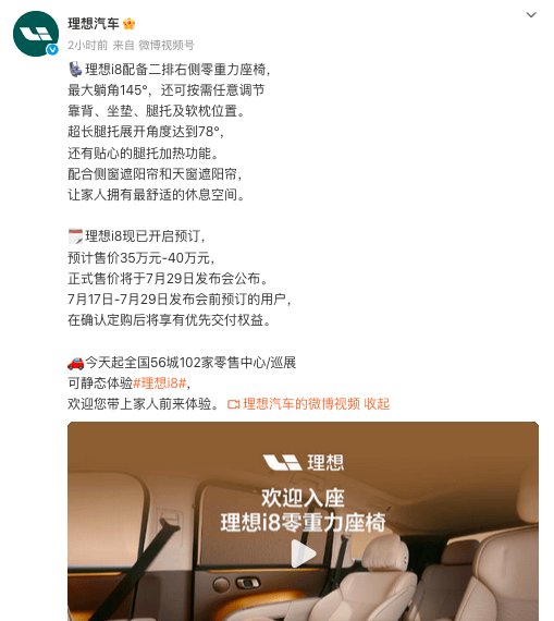 7月17日,理想汽车首款纯电SUV i8正式开启预售,预售价35-40万元,正式售价将在7月29日发布会重磅揭晓。