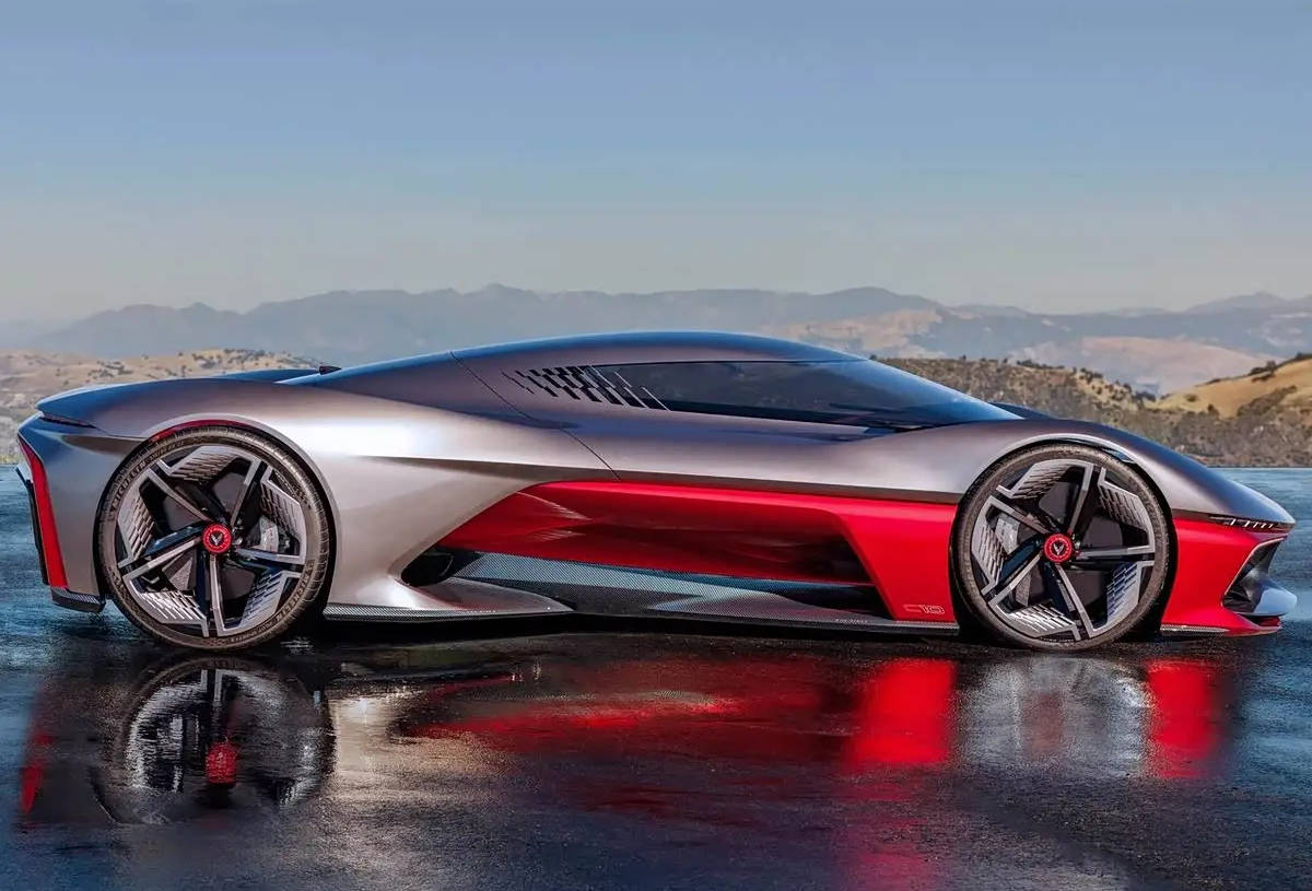 车身侧面的设计也极为夸张,低风阻轮圈配备了单孔中心锁设计,并搭配了前六后四的碳陶纤维制动系统。侧面的通风开口在车体下方与车尾部进行了连通,将空气动力学做到了极致,同时让底盘的设计形成了全新地效风格。此外,新车的机舱打开方式为蚌壳式的前翻设计,未来感属性直接拉满。