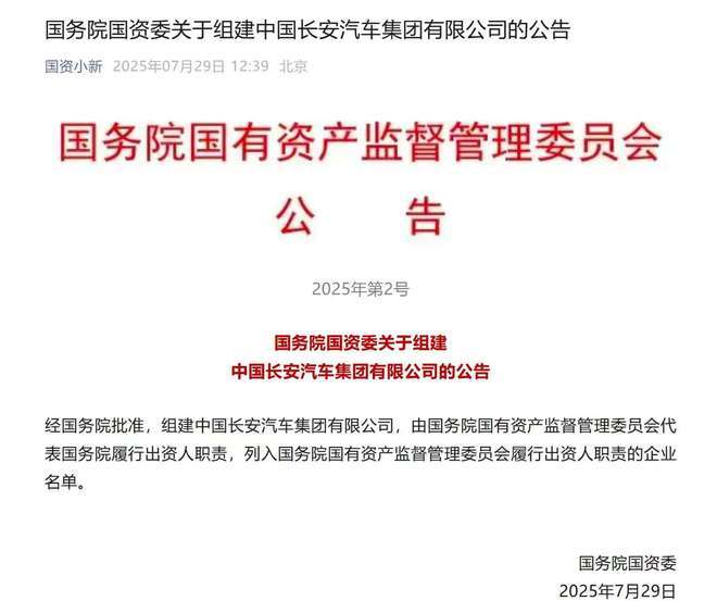 7月29日,中国长安汽车集团有限公司在重庆挂牌成立,正式成为第三家国资委直管的汽车央企