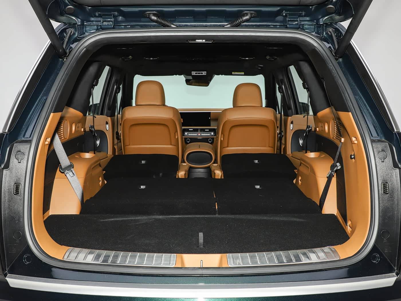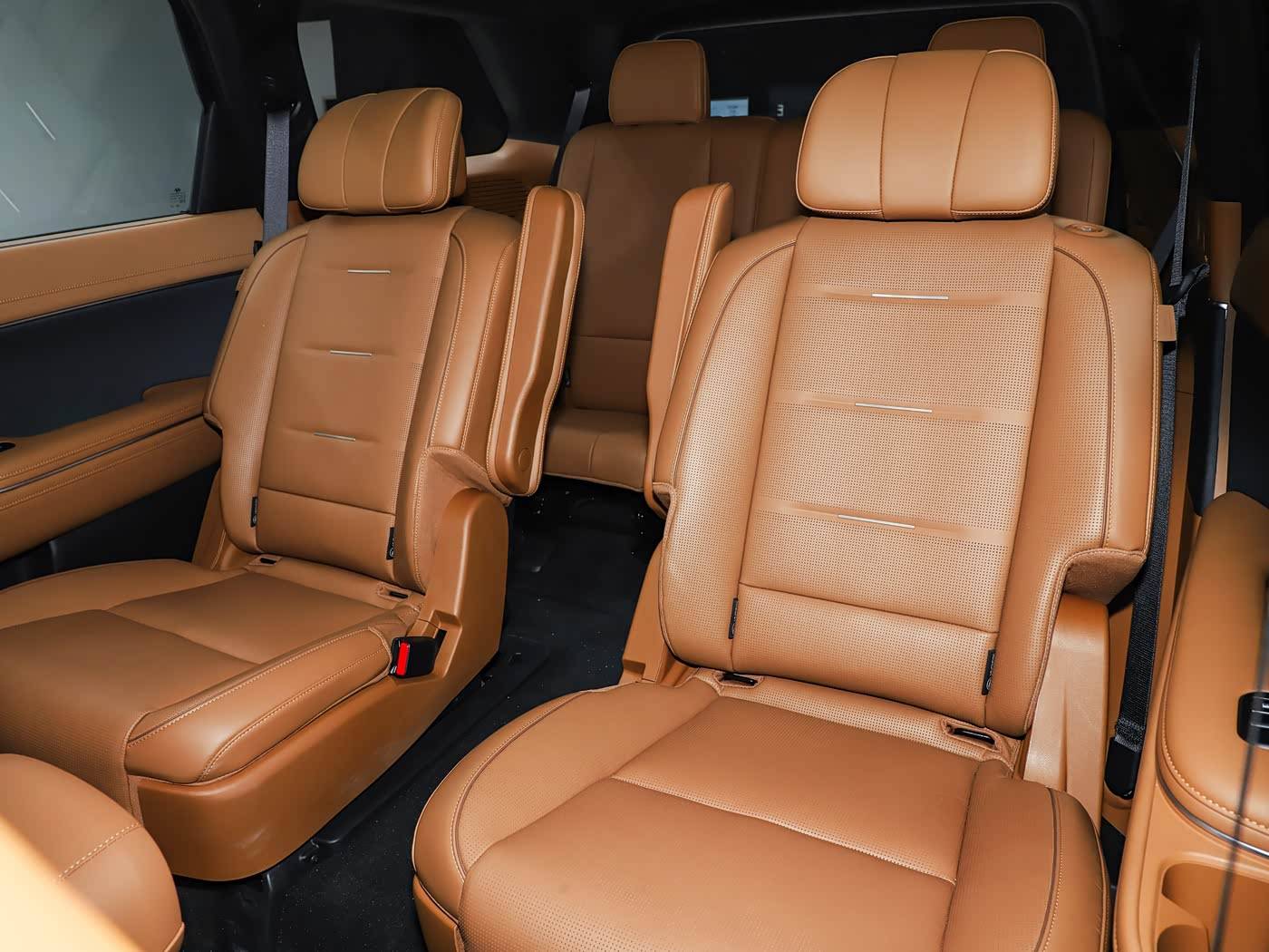 对于一台中大型SUV来说,空间舒适性自然是它强调的卖点。图中展示的是该车的2+2+2的6座版本,未来还会有7座的选择。其前排座椅带有腿托,6座二排采用两个带扶手的独立座椅,并且二三排座椅都可以相对平整的放倒,和后备厢进行了扩展,满足多场景需求。