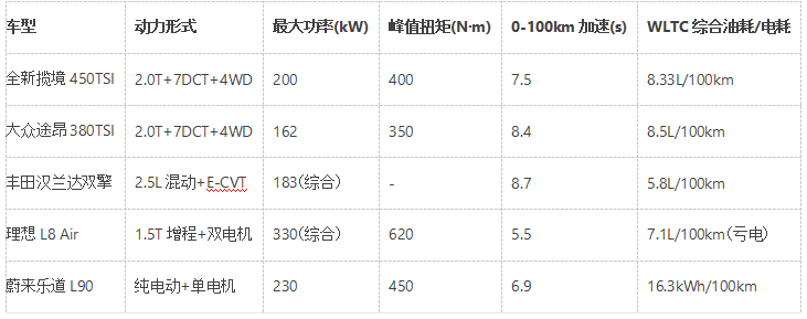 与同级别竞品相比,全新揽境在动力表现上占据明显优势。相较于搭载第三代EA888发动机的大众途昂380TSI版本(最大功率162kW),全新揽境的200kW输出领先约23%。与丰田汉兰达双擎的2.5L混动系统相比,虽然油耗表现稍逊,但动力响应和高速再加速能力更为出色。相较于新能源车型理想L8的增程式电动系统,全新揽境避免了电池电量不足时动力衰减的问题,在各种工况下都能保持一致的性能输出。