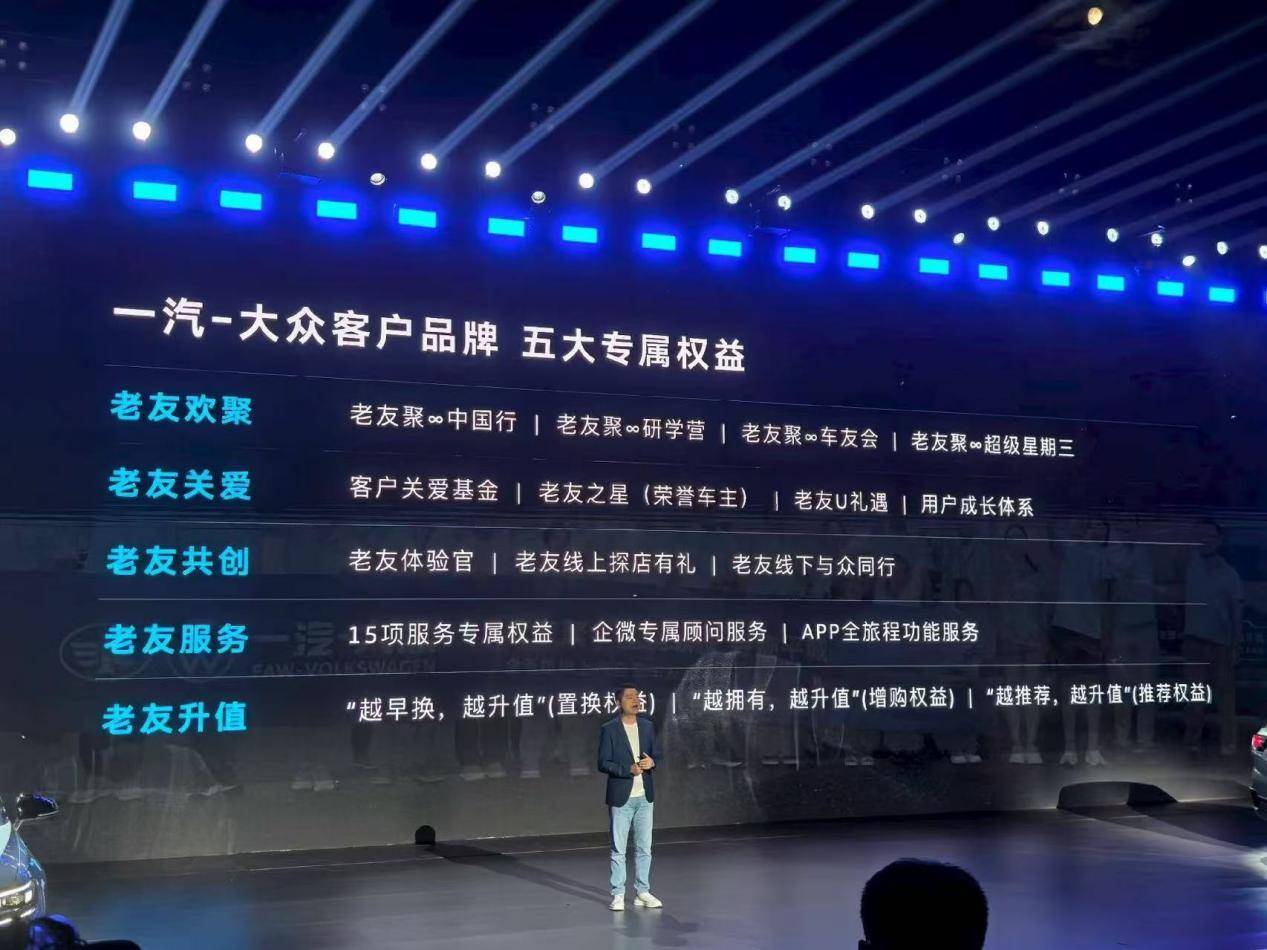 此外,一汽-大众还借此次全新揽境上市契机,发布了客户品牌“大众老友记”,为一汽-大众客户提供老友欢聚、老友关爱、老友共创、老友服务、老友升值计划五大核心权益,覆盖用户购车、用车、换车、推荐与社群运营的完整流程,形成“从用户到客户,再到品牌共建者”的闭环生态。