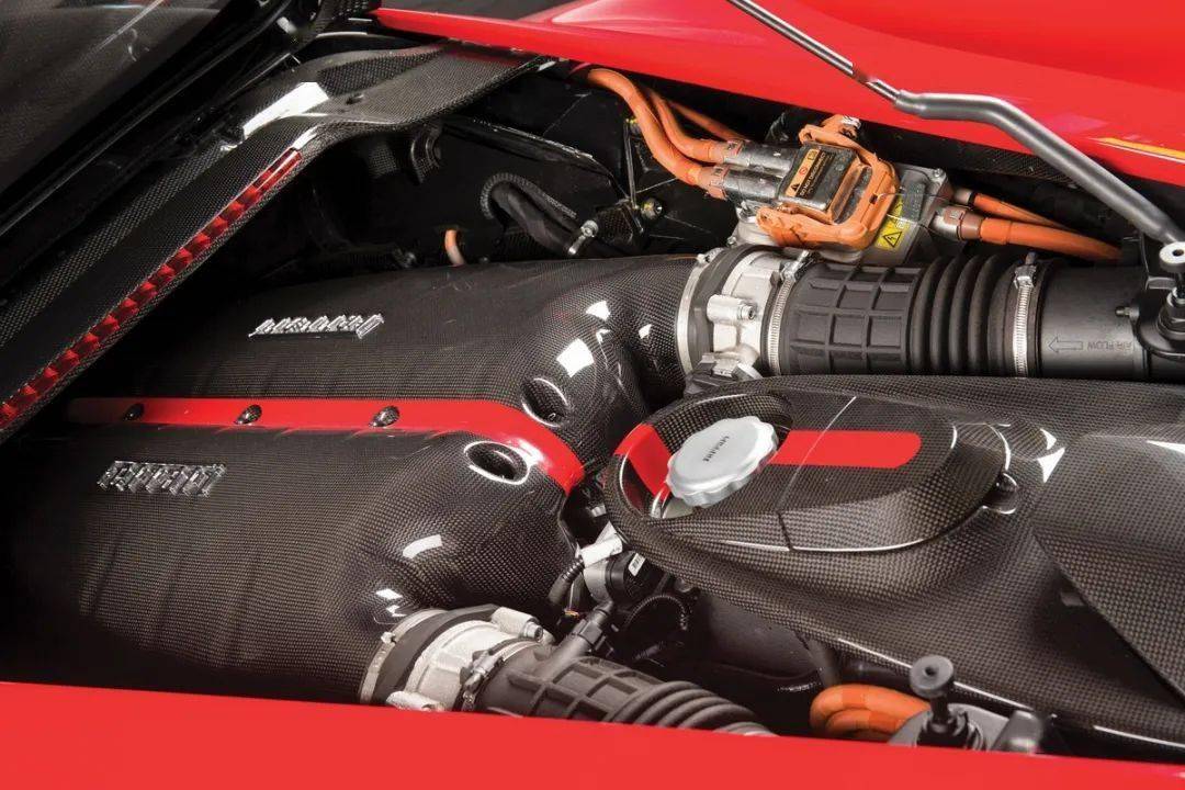 作为十年前混动超跑3剑客之一的拉法,HY-KERS混动技术也是当时的里程碑,其核心组件包括一台V12自然吸气发动机,6.3L排量,最大功率800马力,峰值扭矩700N·m,转速达9250rpm,创同排量引擎转速纪录。其电动机辅助为后轴搭载120kW电动机,综合输出功率963马力,峰值扭矩900N·m,0-100km/h加速仅需2.4秒,极速超350km/h。拉法配置了Brembo定制刹车盘,配合轻量化制动钳,100-0km/h制动距离仅29.5米。