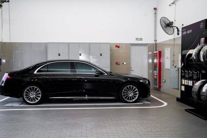 梅赛德斯-奔驰授权经销商拥有各车型专用的定位数据,结合四轮定位仪检查及测量车轮外倾角、主销后倾角、主销内倾角、车轮前束等数据,并结合车身负载、车身高度及胎压精准调节。另外需要对定位仪定期进行校准,确保设备及工具的标准一致,避免使用中出现偏差。