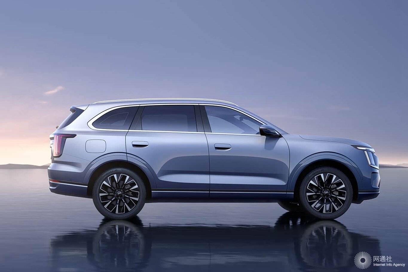 侧面来看,新车侧面造型较为简约、饱满,新车并没有采用过多复杂的腰线勾勒,并对车窗周围、行李架均采用了银色镀铬进行点缀。此外,山海L7 PLUS还采用了半隐藏式车门把手。车尾部分,新车采用贯穿式尾灯组,两侧竖状的灯组造型点亮后极具辨识度。