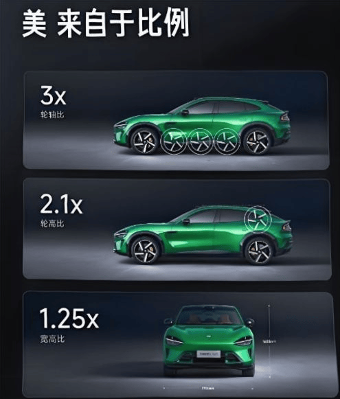 还有像宽高比,大家都知道SUV普遍比轿车要高。那1.25倍宽高比的YU7完美了,1.35倍宽高比的SU7就不好看了吗?有的人喜欢轿车,觉得线条更优雅,有的人喜欢SUV,觉得线条更粗犷大气,这又有什么错呢?