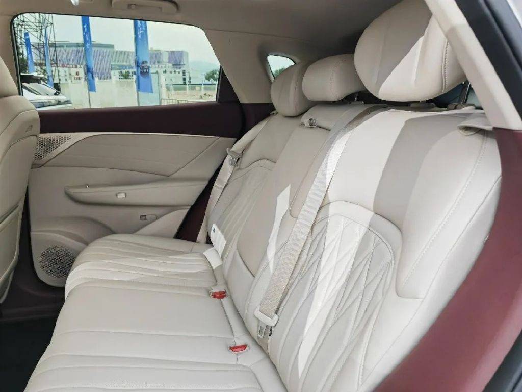 车身尺寸方面,其长宽高分别为4762/1910/1677 mm,轴距达到了2825mm。比宋PLUS DM-i(长宽高分别为4775/1890/1670 mm,轴距为2765mm)、零跑C10(长宽高分别为4739/1900/1680 mm,轴距为2825mm)更宽敞,为车内每位成员都提供了充裕的活动空间。尤其是后排,即便是三位成年人并排乘坐时,依然舒适不拥挤,而且中间位置地板是纯平状态,极大地提升了后排中间乘客乘坐舒适性。