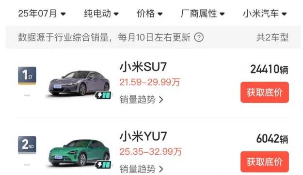 7 月,小米YU7实际交付量仅为6042辆,在纯电车型中也只排到了第30名。更让人尴尬的是,隔壁的零跑B01,仅仅用了7天时间就售出了8576辆,比小米YU7整个月交付的数量还要多。巨大的反差之下,质疑声开始甚嚣尘上,当初那所谓的20万订单,究竟是不是真的?