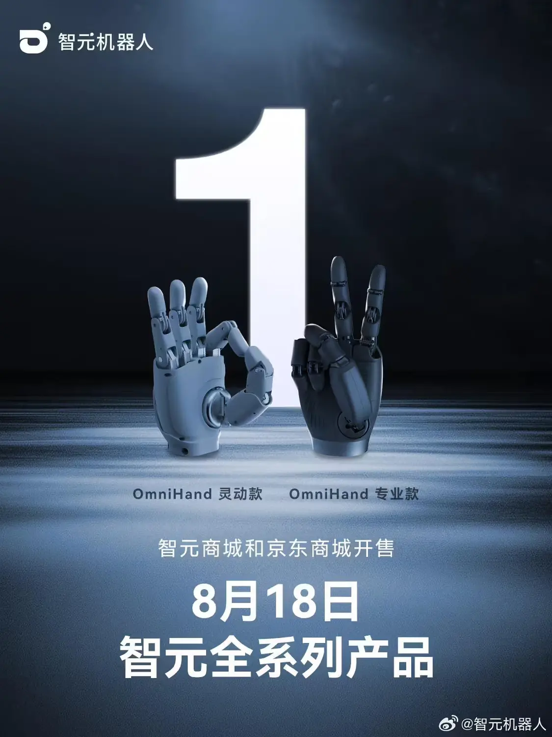 其中,灵动款 2025 灵巧手将于 8 月 18 日登陆智元商城及京东商城,指导价 1.48 万元,8 月 18 日至 8 月底全球首发限时直降 5000 元,即 9800 元;灵动触觉款首发线上价 1.48 万元(原 1.98 万元)。