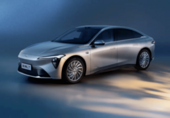 从命名序号“7”可以看出其定位较高,级别上至境L7是一款中大型轿车。车头造型与当前别克家族E系列新能源车有着较大的风格差异,灯组采用类似的一体式设计,搭配半封闭前脸、低矮的前端折线和前机舱盖的隆起筋线,呈现出趋向于运动感的特征。