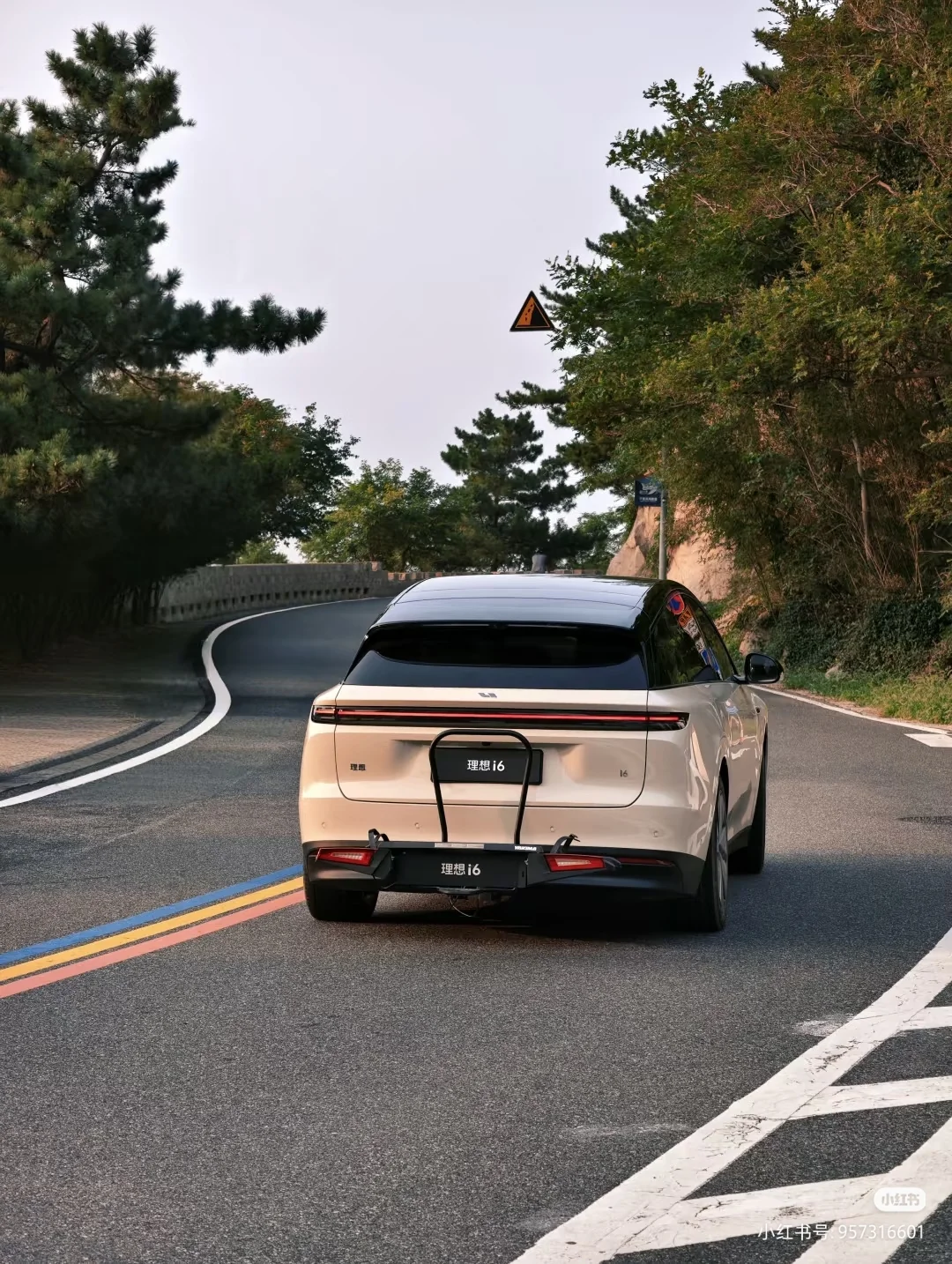 值得一提的是,从车尾角度看,这台理想i6还提供了一个独特的配置:自行车支架。