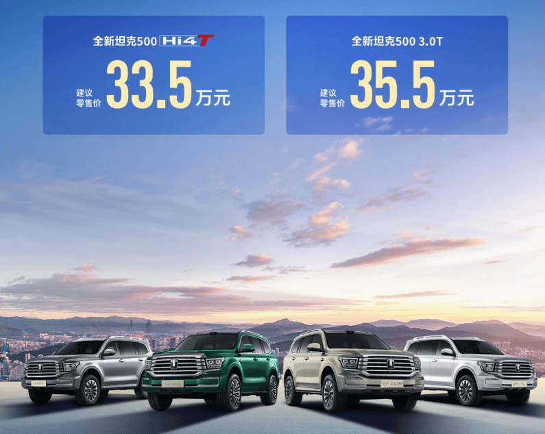新款坦克500上市,售价33.5万起,插混续航覆盖110至201公里,新能源销量占比超过一半。坦克品牌已完成从“网红方盒子300”向“豪华硬派500”的平稳过渡,结构升级一目了然。